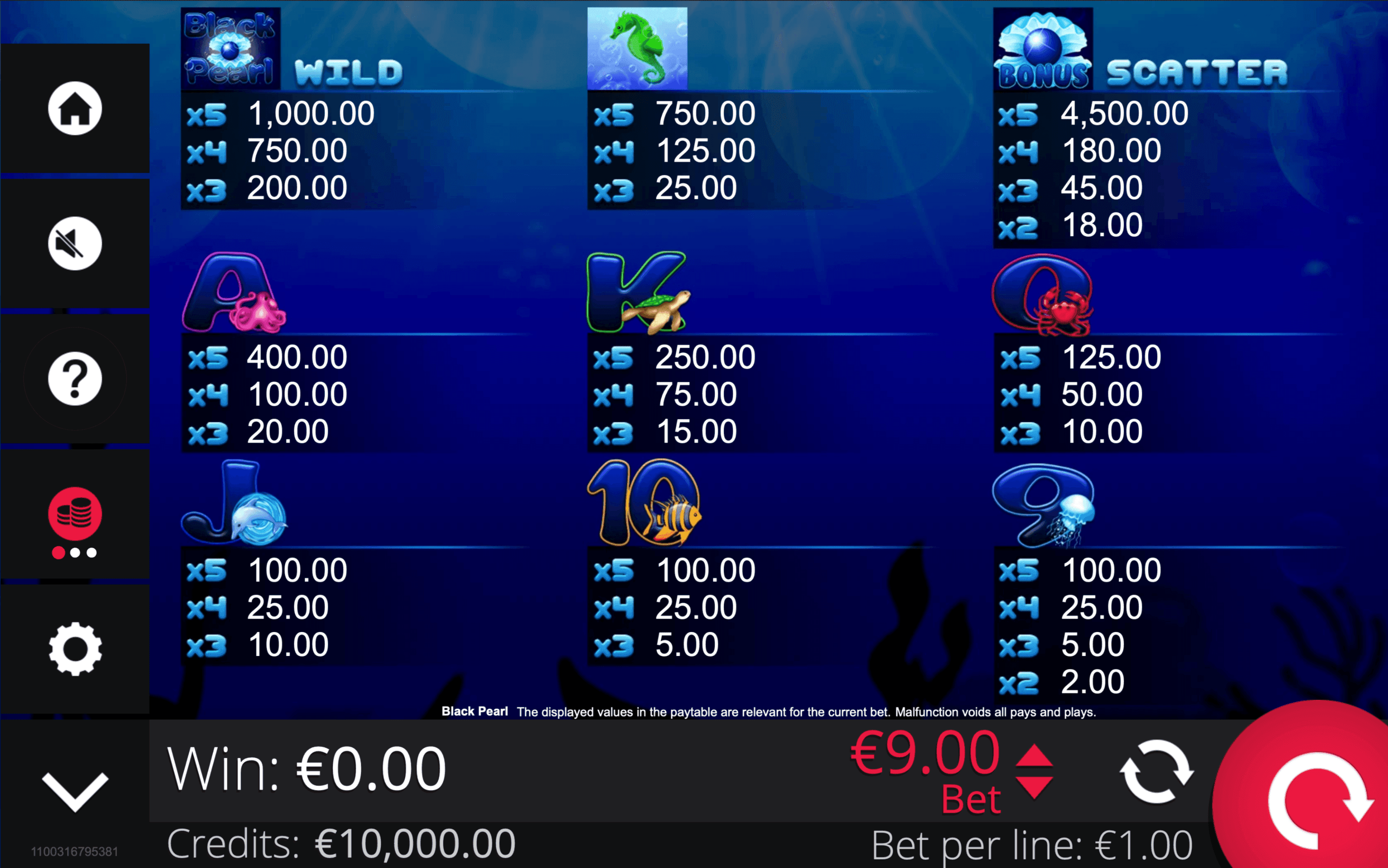 **BLACK PEARL** is a 3-reel, 3-row slot with up to 9 paylines. Black Pearl Wild Symbols substitute for other symbols and **multiply wins 2×**, forming standard combinations if three or more appear on a payline.