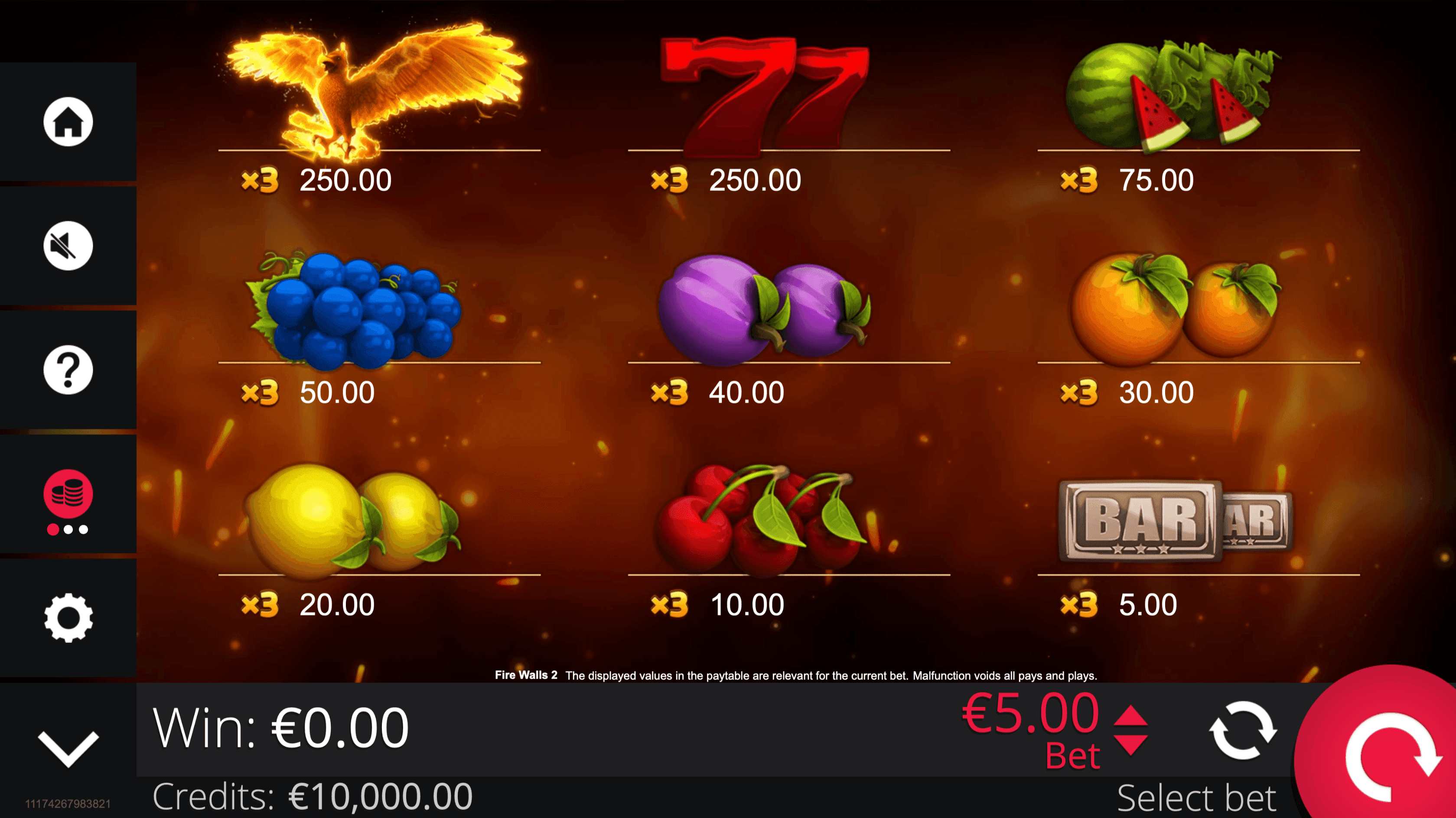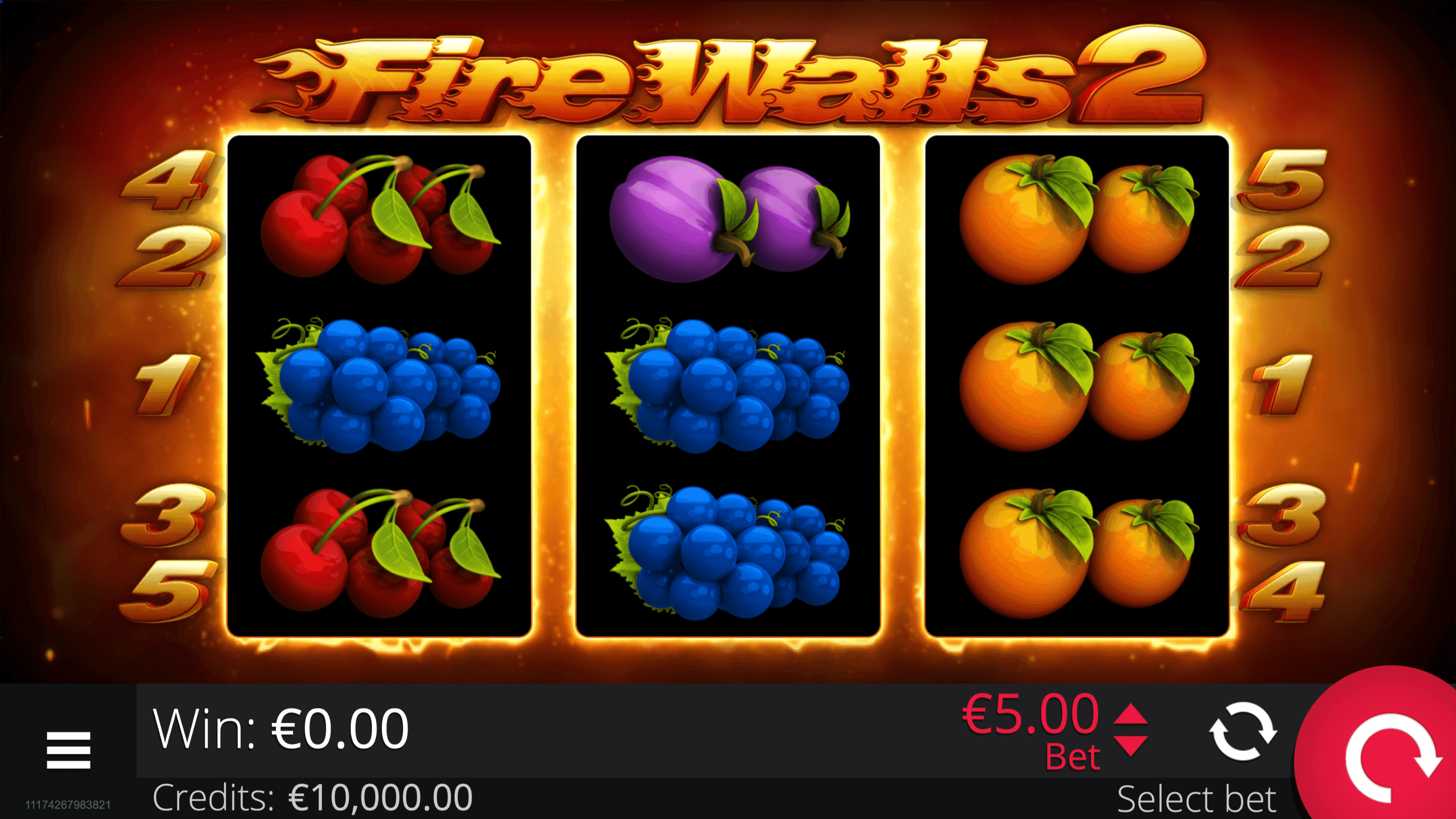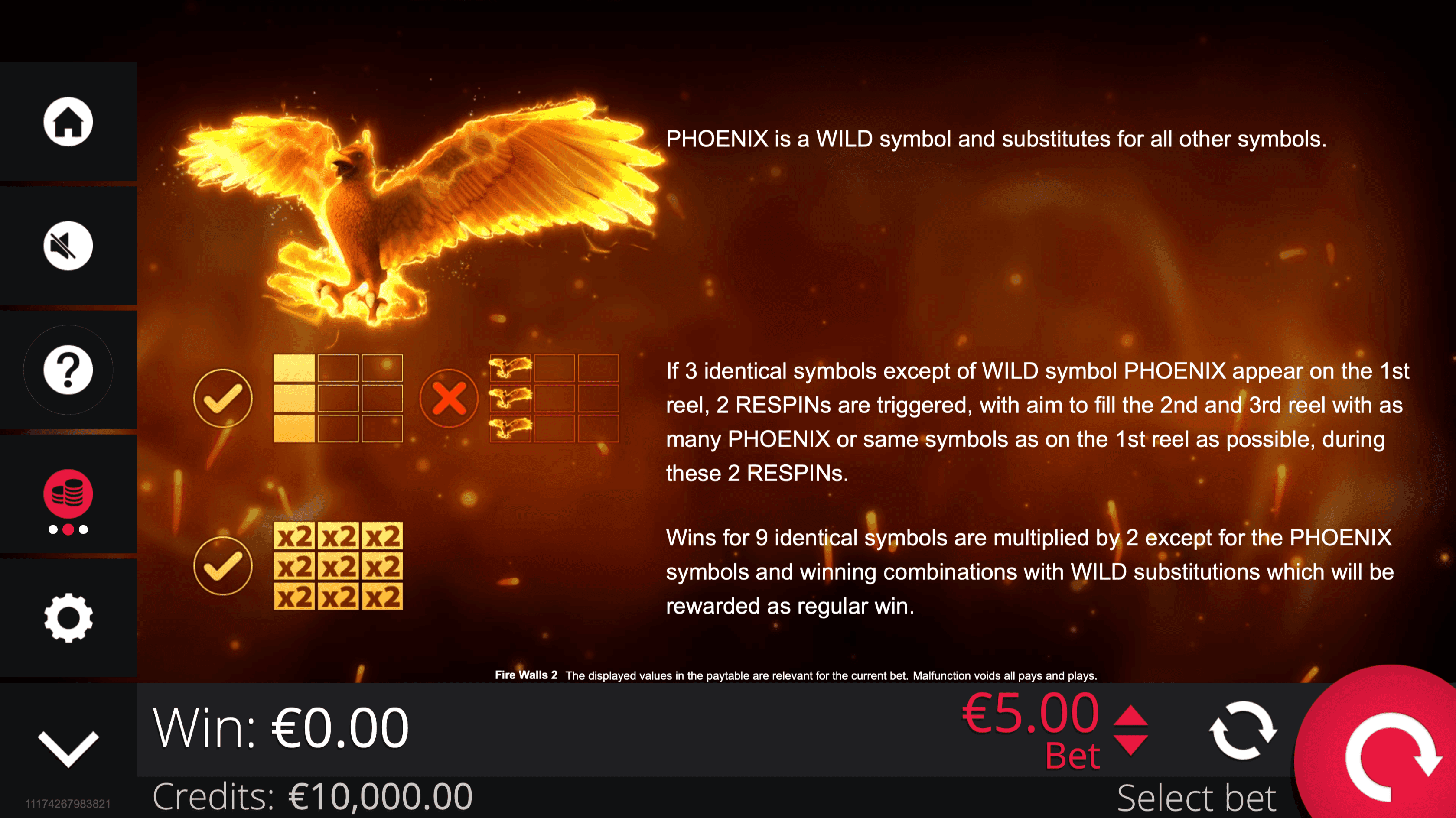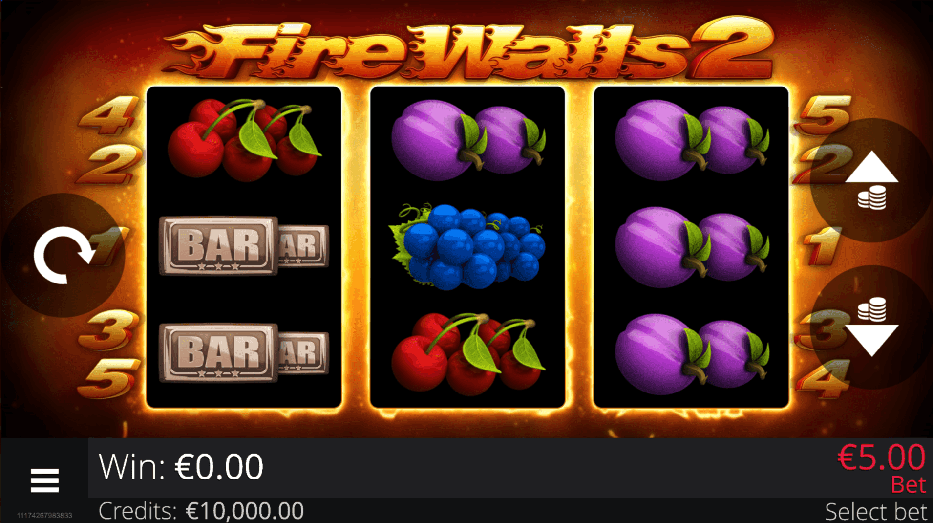 **FIRE WALLS 2** ignites 3 reels and 3 rows with classic fruit symbols and the Majestic Phoenix Wild. Cherries, lemons, and melons come alive with every spin, delivering vivid, fiery wins.