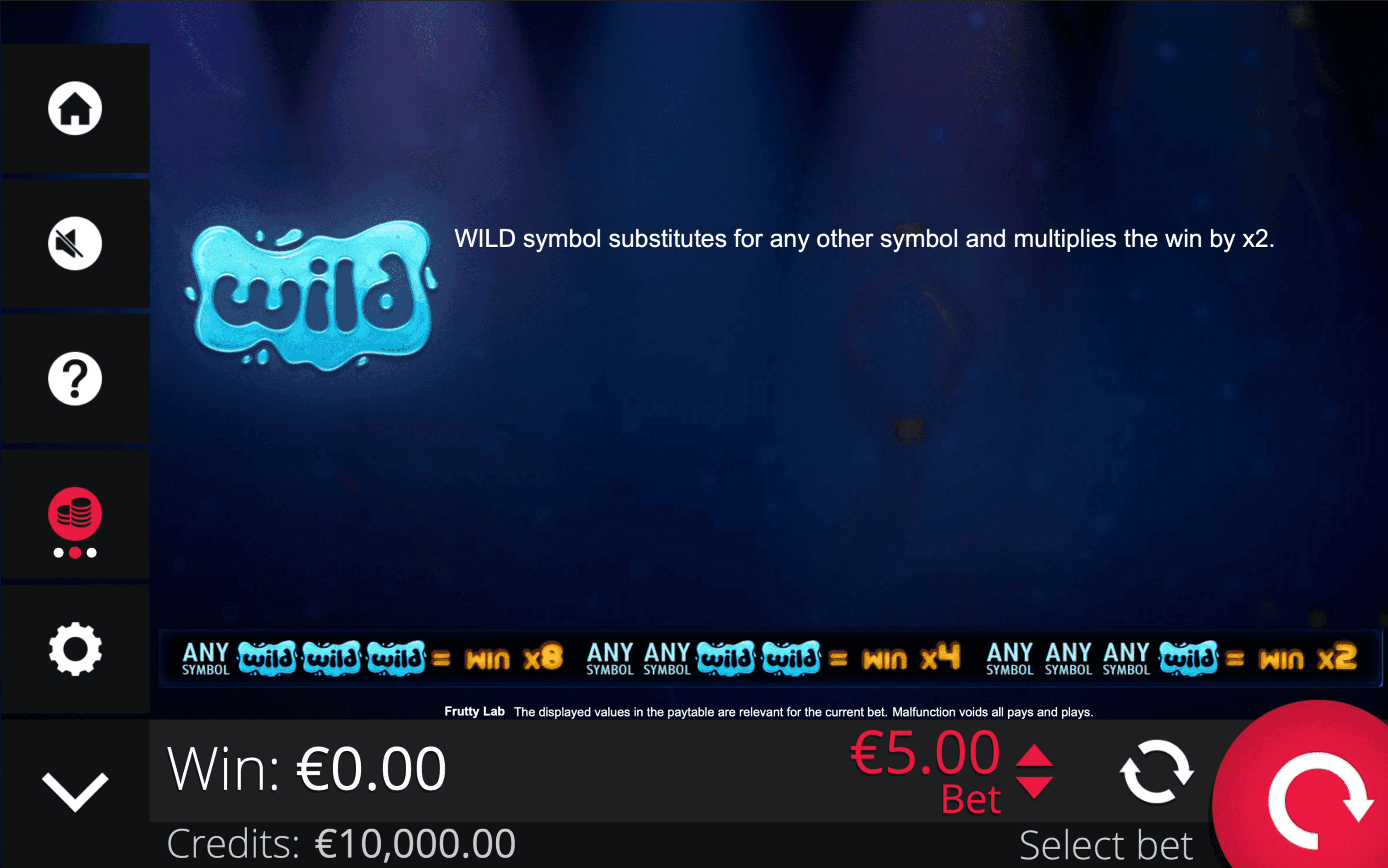 Expanded 4-symbol reels increase hit frequency and keep the gameplay fast. With clear rules and quick wins, **FRUTTY LAB** delivers simple, multiplier-driven action with every spin.