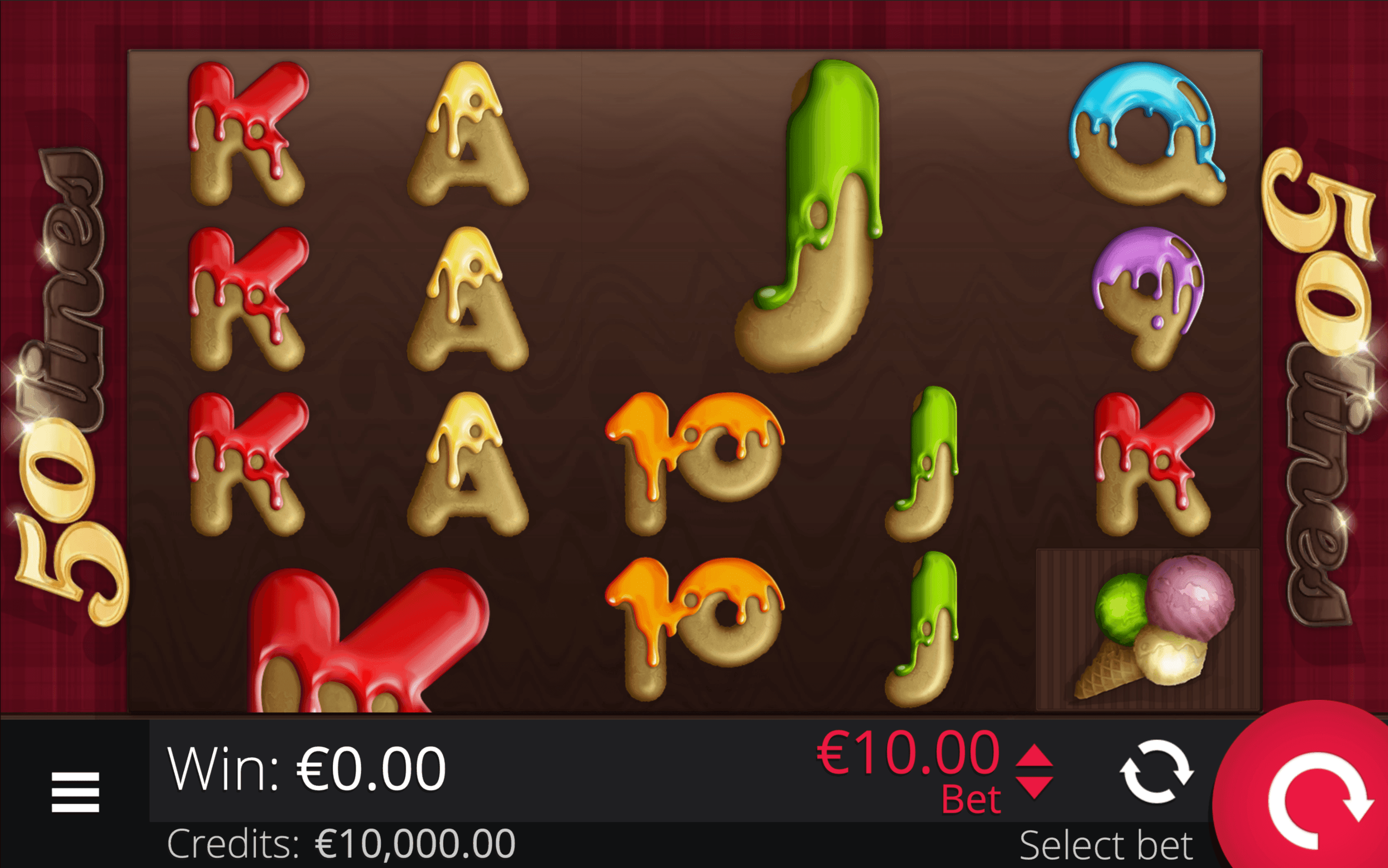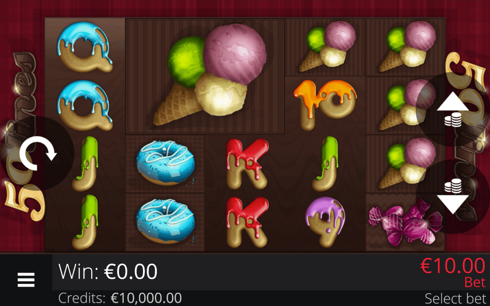 Sweet-themed slot with 12 symbols including Wild, Scatter, and Mystery Symbols, Giant Symbols, and Bonus Free Spins across 50 paylines.